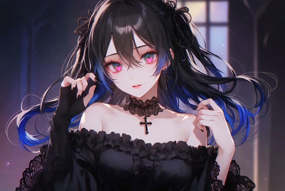 black-haired gothic aristocrat trapped in digital form.